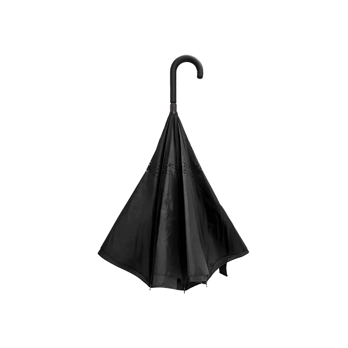 Ну и наконец, зонт-трость, который складывается мокрой стороной внутрь — в обратную сторону. Сочетание функциональности и красоты.