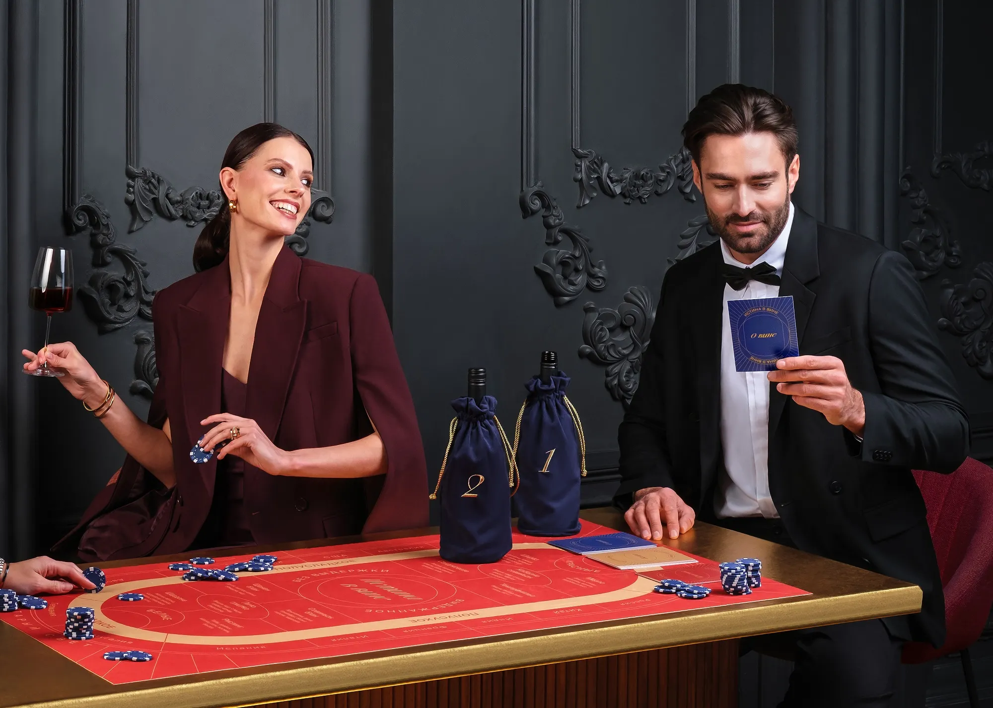 В коллаборации с сомелье и ведущими экспертами сервиса SimplePrivé мы создали эксклюзивный продукт — настольную игру, смысл которой заключается в дегустации напитков вслепую. Такой интерактив напоминает винное казино**, в котором все участники получают новый незабываемый опыт и расширяют географию вкусов. Увлекательный формат сочетает в себе возможность погружения в новую сферу знаний и вариант досуга для компании. Более опытным дегустаторам будет также интересно познакомиться с малоизвестными фактами о любимом напитке. Вкус и азарт* — две главные составляющие вечера, в котором запланированы винные игры!