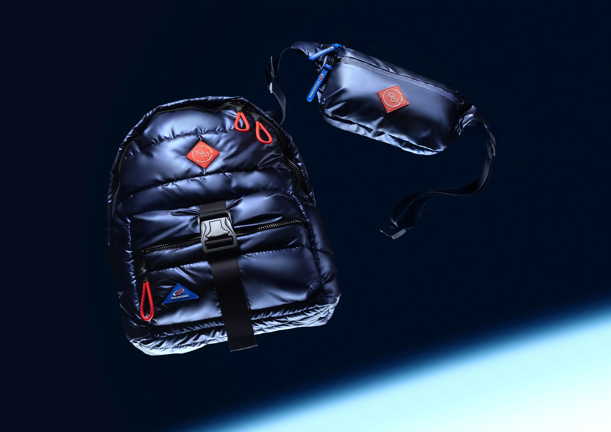 Другим адаптированным предметом стала дутая поясная сумка, совмещающая в себе практичность и космический стиль. Как и рюкзак, она изготовлена из нейлона и полиэстера, что придает ей устойчивости к перегрузкам. Каждая деталь этих аксессуаров продумана до мелочей: удобные внутренние и внешние карманы, идеальные швы, специально подобранная фурнитура, которая приятна на ощупь и прослужит не один космический год. Минималистично-футуристичный дизайн дополняется контрастной подкладкой и ромбовидным шевроном с памятной датой — годом, когда первый человек отправился покорять космическое пространство. Пуллер с логотипом «Роскосмоса» также говорит о космическом характере коллекции и о связи истории и современности.