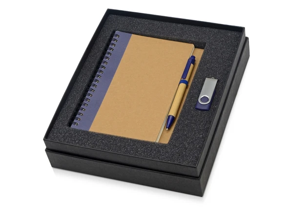 Встречайте подарочный набор Essentials: с флеш-картой Квебек разъемом USB 2.0 любые документы, договора и презентации всегда будут под рукой. А коричнево-синий блокнот Priestly с ручкой пригодится, если вам нужно нарисовать схему клиенту на встрече.