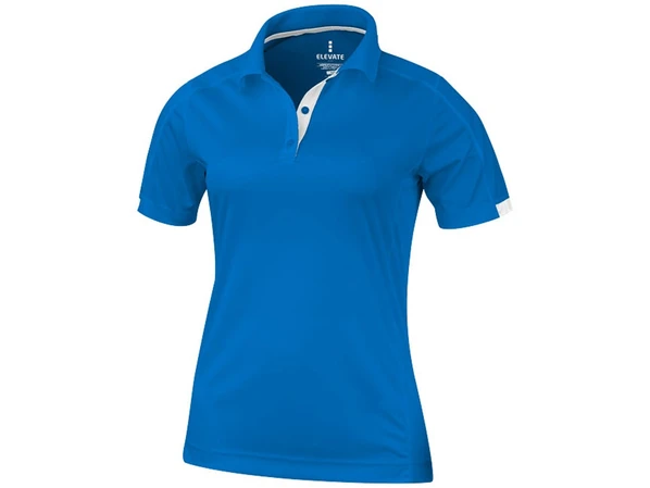 Женская рубашка поло синего цвета с короткими рукавами Kiso. Универсальный покрой изделия позволяет использовать поло для повседневной носки.