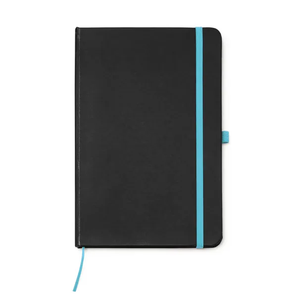 Стильный черно-голубой блокнот A5 Piana с твердой обложкой из полиуретана — материал PU. Количество — 80 нелинованных листов.