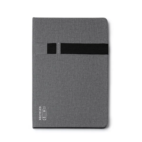 Современный серо-черный блокнот А5 Sikas с твердой обложкой из переработанного полиэтилена — материал RPET. Количество — 80 нелинованных листов.