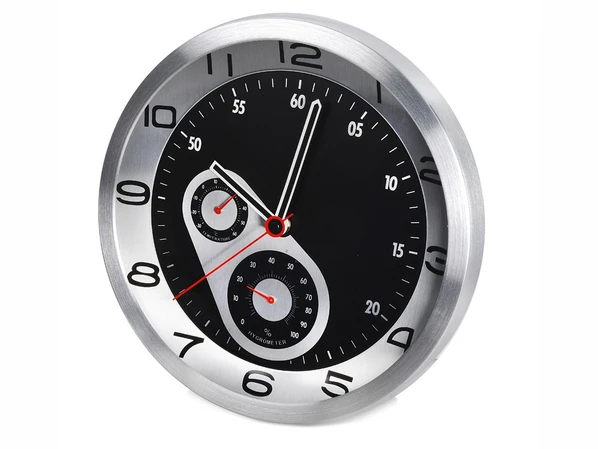 Часы настенные с термометром и гигрометром, черный, серый - фото № 1