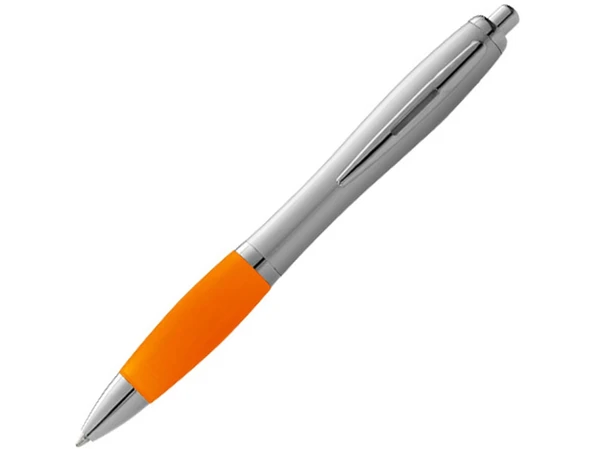 Экономичная ручка Nash отлично подойдет для офисной работы. Прочный корпус выполнен в цвете серебристый металлик, а яркий оранжевый грипп создает удобный упор при письме. Нажимной механизм. Чёрные чернила.