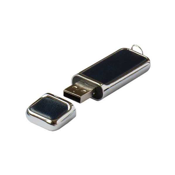 Металлическая флешка с кожаными вставками цвета графит на 4 Гб. На корпусе располагается также специальное крепежное кольцо для цепочки или брелока. Благодаря кожаным вставкам флешка будет отлично лежать в руке и не скользить на поверхностях! 4 Гб памяти - это оптимальный размер для хранения Ваших документов, презентаций, макетов и музыки.