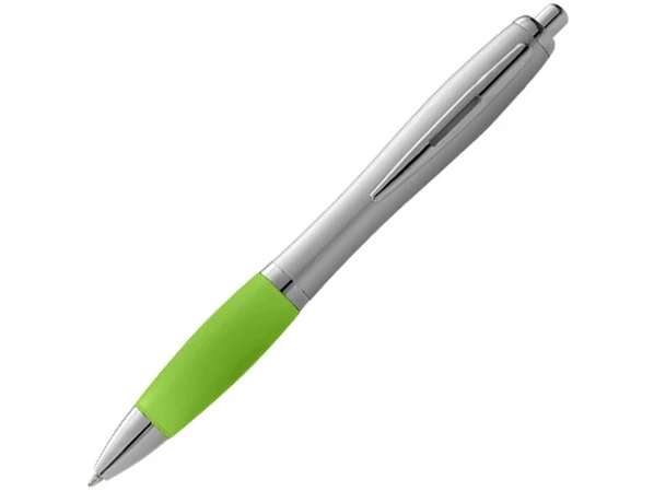 Промо-ручка для повседневного использования Nash. Прочный корпус выполнен в цвете серебристый металлик, а яркий салатовый грипп создает удобный упор при письме. Нажимной механизм. Чёрные чернила.