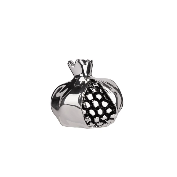 Декоративная скульптура в виде частично очищенного плода граната от бренда Valenti. Изготовлена из мраморной крошки, посеребрена. Отличается проработанностью деталей, позволяя рассмотреть отдельные зернышки.