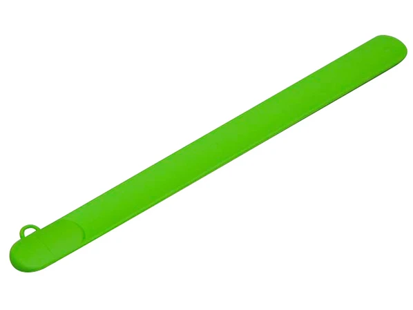 USB-флешка на 16 Гб в виде браслета приглушенного зеленого цвета предназначена для проведения удачного промоушена нового продукта или продвижения бренда. На представленный сувенир можно нанести фирменный логотип и добавить ему узнаваемости.