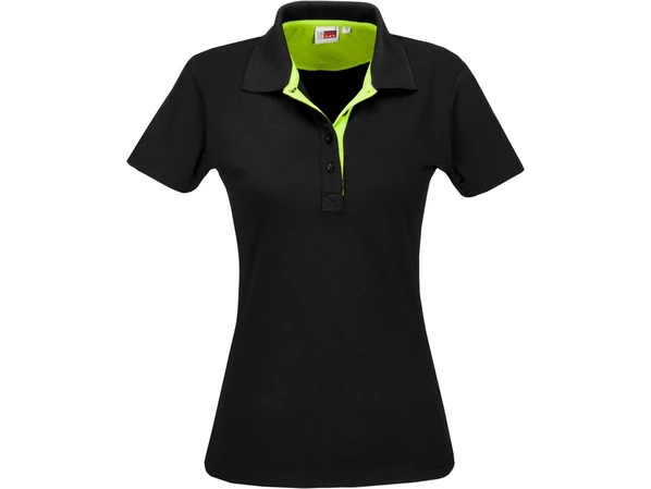 Черная женская футболка поло с салатовой планкой Solo изготовлена из полиэстера (65%) и хлопка (35%). Модель универсальная - в ней можно ходить в офис и заниматься спортом.