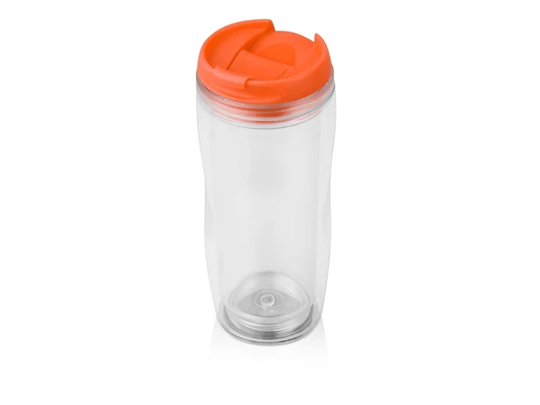 Корпус кружки сделан прозрачным, крышка – оранжевой. Она держит температуру до двух часов, идеально подходит для использования дома, в офисе или в автомобильном путешествии.