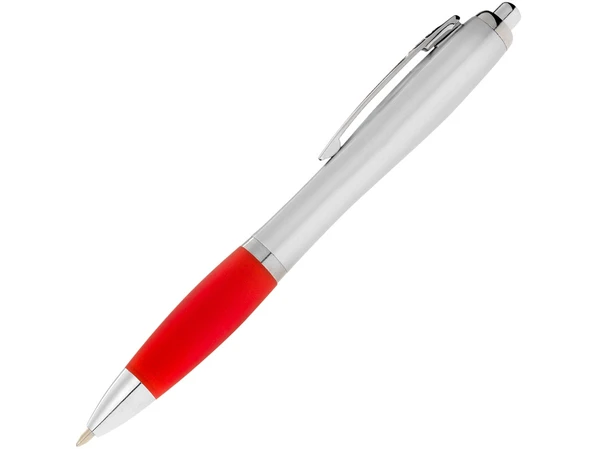 Функциональная серебряная шариковая ручка Nash. Корпус дополнен прорезиненным грипом яркого красного цвета. Возможна замена стержня!