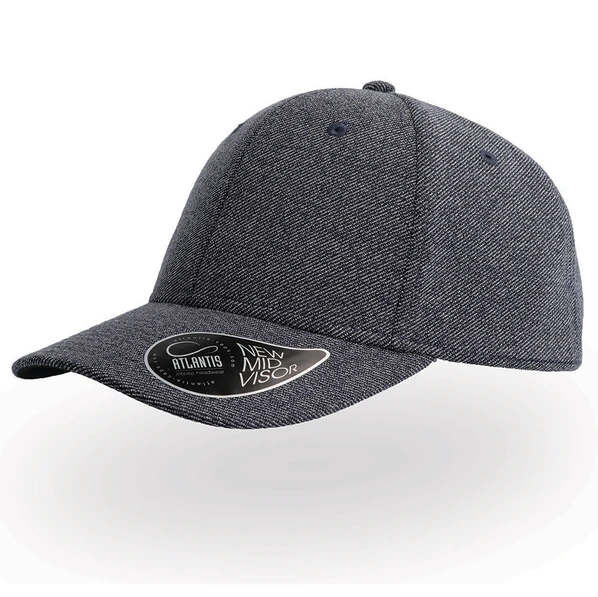 Бейсболка на 6 клиньев с пластиковой застежкой. Цвет изделия неоднородный - синий меланж.