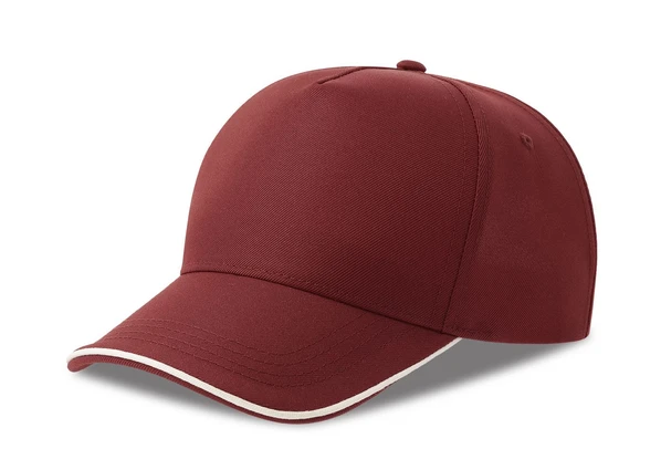 Классическая структурированная бордовая бейсболка Recy Five Piping из переработанного полиэстера c контрастным кантом.