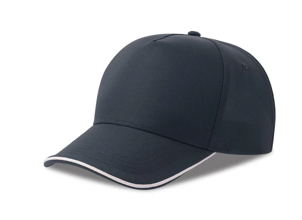 Классическая структурированная темно-синяя бейсболка Recy Five Piping из переработанного полиэстера c контрастным кантом.