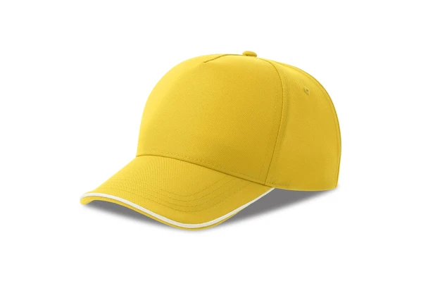 Классическая структурированная желтая бейсболка Recy Five Piping из переработанного полиэстера c контрастным кантом.