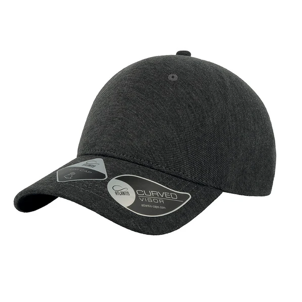 Жесткая бейсболка цвета черный меланж Atlantis Uni-cap Piquet. Полная прострочка, изогнутый козырек. Прекрасная защита от солнца для летних мероприятий, походов и жизни на природе.