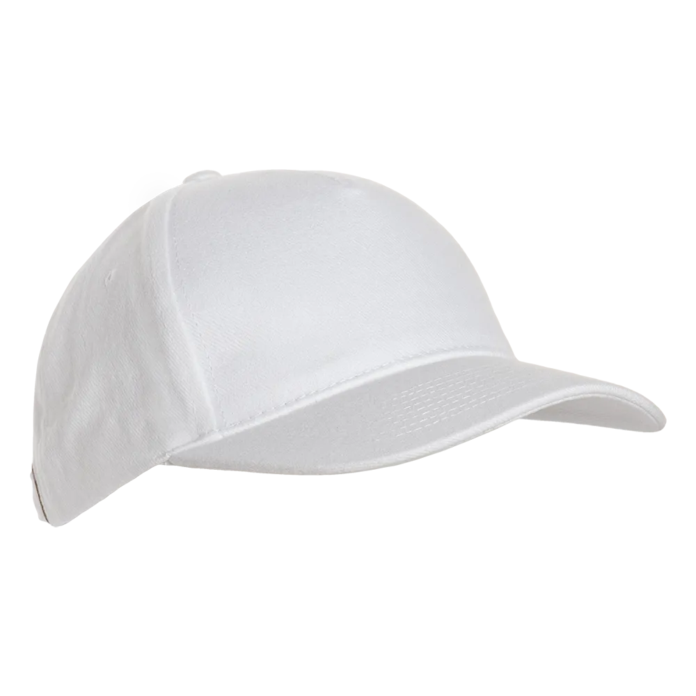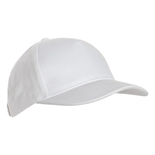 Стильная белая бейсболка-пятиклинка с классическим изогнутым козырьком и прочной застежкой на металлический замок.
