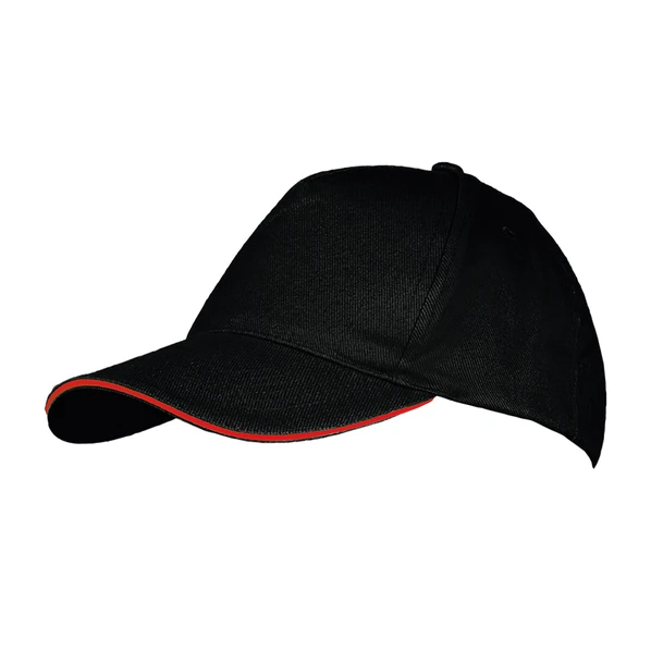 Классическая бейсболка Long Beach из 100% хлопка плотностью 260 г/м2. Модель выполнена в черном цвете и дополнена красной контрастной полосой на козырьке.