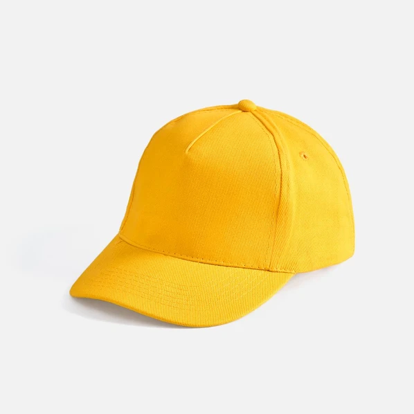 Бейсболка выполнена в желтом цвете, без полосы по контуру козырька. Идеальная база для создания промо-продукции для компании.