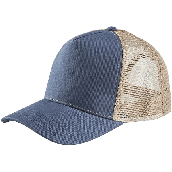 Синяя бейсболка Blink с бежевой сеткой и с 5 клиньями без лобового шва в нестандартном исполнении.