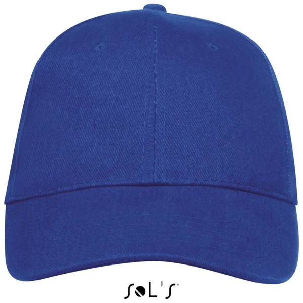 Классическая ярко-синяя бейсболка Buffalo. Модель с жестким козырьком, 6 отверстиями с вышивкой для вентиляции и регулируемой металлической застежкой.