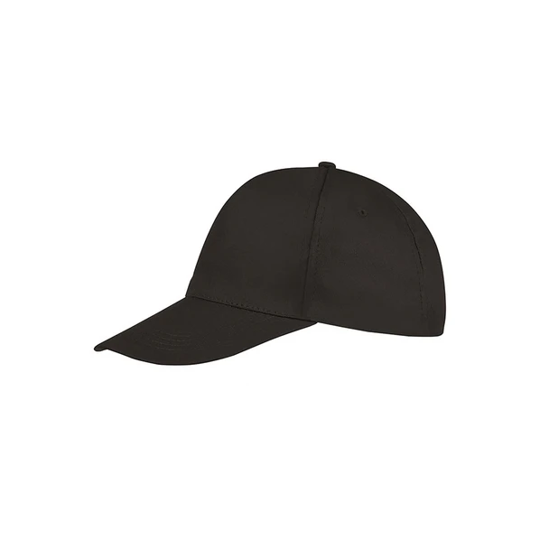 Классическая бейсболка Buzz производства бренда Sol's. Модель черного цвета из 100% хлопка. Жесткий козырек "сэндвич", 4 вышитых отверстия для вентиляции, регулируемая застежка на липучке.
