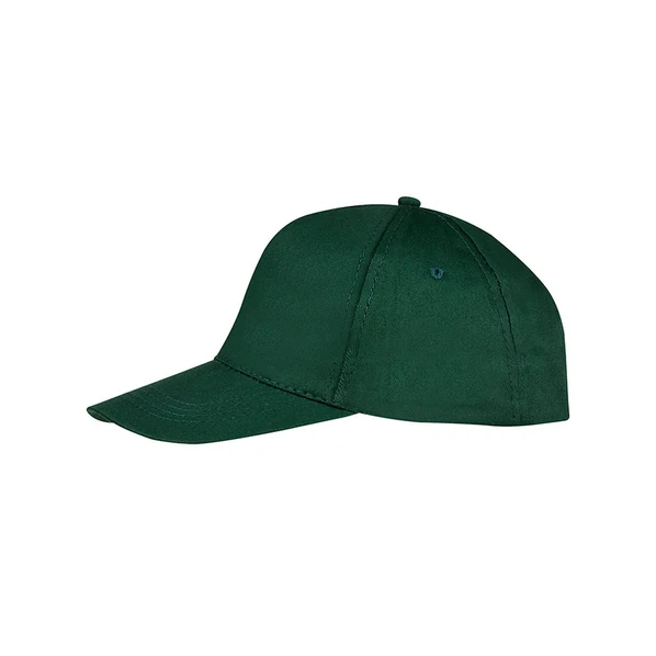 Классическая бейсболка Buzz производства бренда Sol's. Модель темно-зеленого цвета из 100% хлопка. Жесткий козырек "сэндвич", 4 вышитых отверстия для вентиляции, регулируемая застежка на липучке.