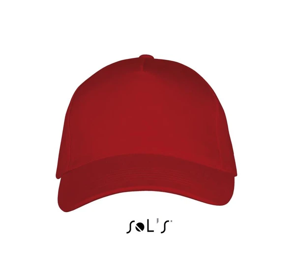 Классическая красная бейсболка Long Beach производства бренда Sol's. Жесткий козырек. 4 вышитых отверстия для вентиляции. Регулируемая металлическая застежка. 5 клиньев.