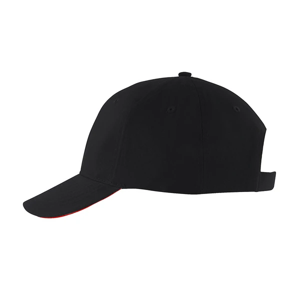 Легкая бейсболка черного цвета Sol's Solar из 100% хлопка. Козырек дополнен красным кантом. Идеально подойдет для любых мероприятий и рекламы.