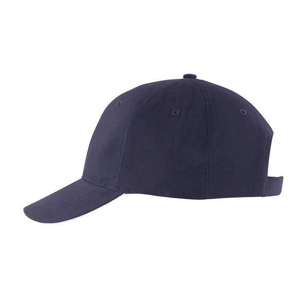 Легкая бейсболка синего цвета Sol's Solar из 100% хлопка. Козырек дополнен белым кантом. Идеально подойдет для любых мероприятий и рекламы.