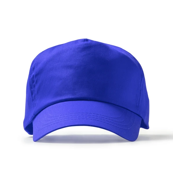 Пятипанельная ярко-синяя кепка из 100% хлопка. Размер регулируется с помощью застежки на липучке велькро. Вентиляционные люверсы. Съемный ярлык.