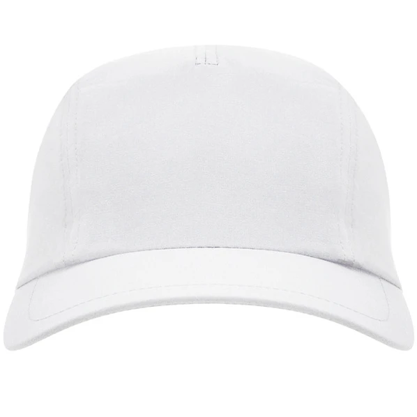 Стильная белая 3-панельная бейсболка. Легкая дышащая ткань. Размер регулируется с помощью застежки на липучке велькро. Передняя часть бейсболки подходит для дополнительных процессов обработки.