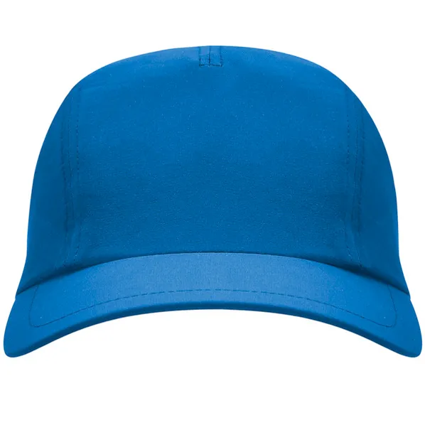 Стильная синяя 3-панельная бейсболка с технической ткани. Легкая дышащая ткань. Размер регулируется с помощью застежки на липучке велькро.