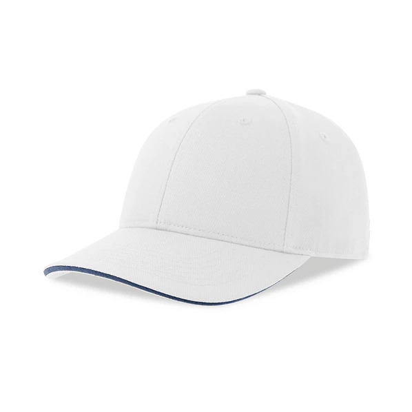 Практичная бело-синяя бейсболка Liberty Sandwich-S из смеси органического (80%) и переработанного (20%) хлопка - одно из лучших решений для промомероприятий и корпоративной формы: