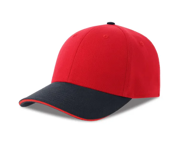 Стильная красно-черная бейсболка Liberty Sandwich-S из смеси органического (80%) и переработанного (20%) хлопка — одно из лучших решений для промомероприятий и корпоративной формы: