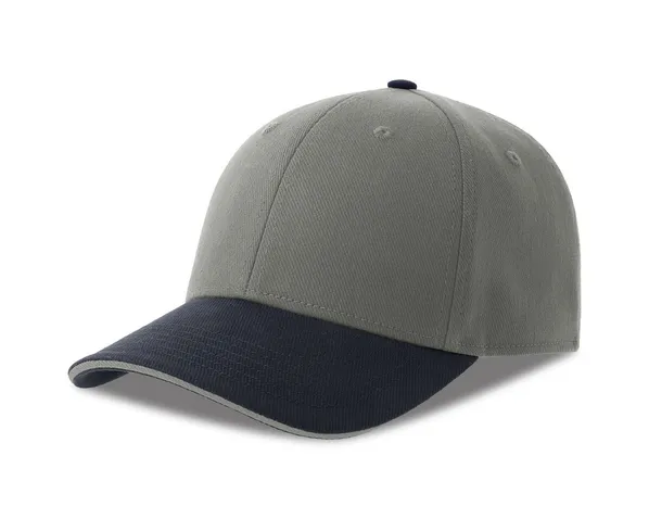 Стильная серо-синяя бейсболка Liberty Sandwich-S из смеси органического (80%) и переработанного (20%) хлопка — одно из лучших решений для промомероприятий и корпоративной формы: