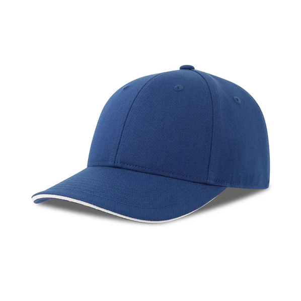 Практичная сине-белая бейсболка Liberty Sandwich-S из смеси органического (80%) и переработанного (20%) хлопка - одно из лучших решений для промомероприятий и корпоративной формы: