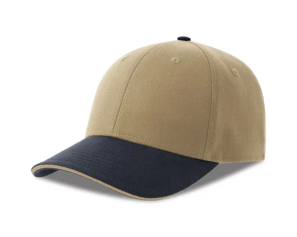 Стильная темно-синня бейсболка с цветом хаки Liberty Sandwich-S из смеси органического (80%) и переработанного (20%) хлопка — одно из лучших решений для промомероприятий и корпоративной формы:
