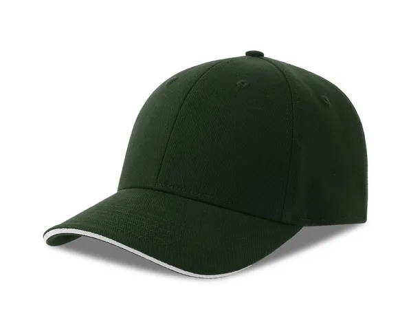 Стильная темно-зеленая бейсболка Liberty Sandwich-S из смеси органического (80%) и переработанного (20%) хлопка — одно из лучших решений для промомероприятий и корпоративной формы: