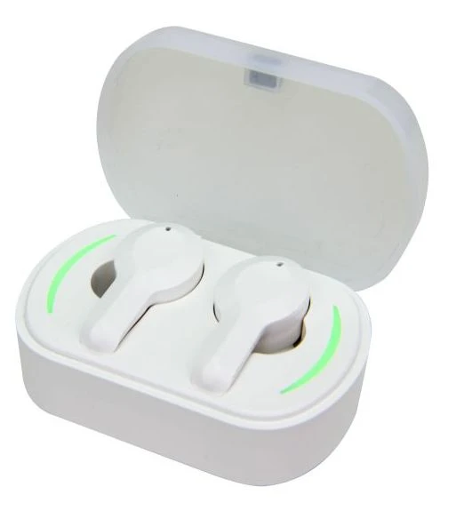 Современные белые беспроводные наушники Sonic Sense производства бренда Molti. Универсальная модель в компактном зарядном кейсе.