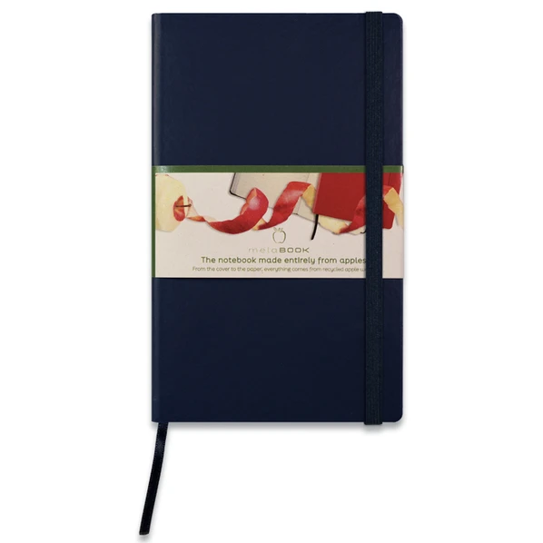 Экологичный синий блокнот Apple Skin II. Формат 13х21 см. Форцазы из яблочной плотной бумаги 140 гр FSC. Гибкая обложка с резинкой и ляссе в тон обложки.