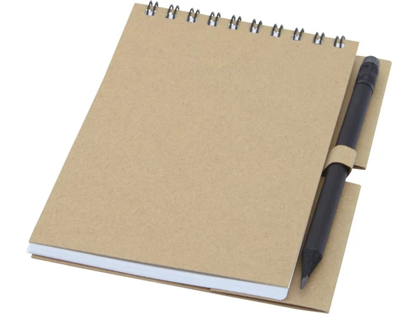 Бежевый блокнот Luciano Eco на гребне из 40 листов плотностью 80 г/м². Обложка и листы изготовлены из переработанной бумаги, соответствующей FSC, без декора.