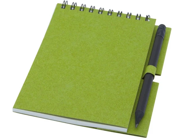 Зеленый блокнот Luciano Eco на гребне из 40 листов плотностью 80 г/м². Обложка и листы изготовлены из переработанной бумаги, соответствующей FSC, без декора.