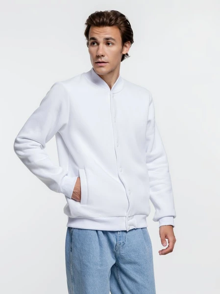Классический белый бомбер унисекс свободной посадки на кнопках.