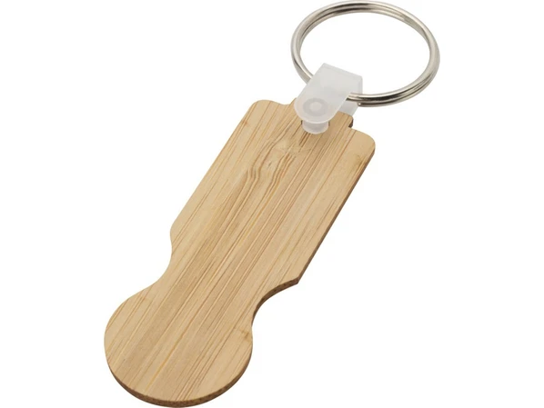 Бежевый брелок для ключей Ronan для тележки изготовлен из бамбука и подходит для большинства тележек супермаркетов, позволяя открывать их без монет или жетонов.