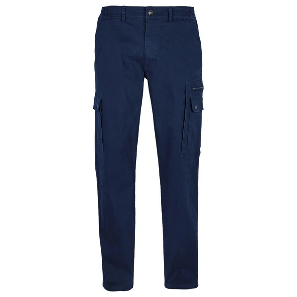 Темно-синие мужские брюки современного кроя с застежкой-молнией и металлической пуговицей. Петельки для ремня, передние косые карманы.
