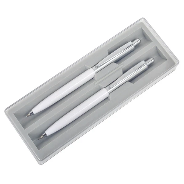 Классический набор белого цвета Business Set, состоящий из шариковой ручки и механического карандаша в пластиковом футляре.