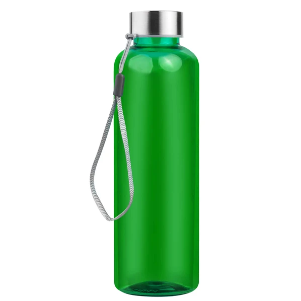 Бутылка для воды Ardi Pet, 550 мл. Корпус бутылки изготовлен из безопасного пищевого пластика. Крышка из нержавеющей стали со шнурком для удобства переноски или крепления. Пластиковая зеленая бутылка с металлической крышкой.