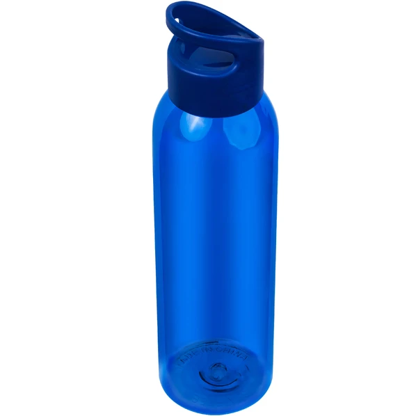 Синяя бутылка для воды изготовлена из безопасного пищевого полупрозрачного пластика. На крышке бутылки имеется крепление, которое позволяет закрепить бутылку на рюкзаке или на поясе.
